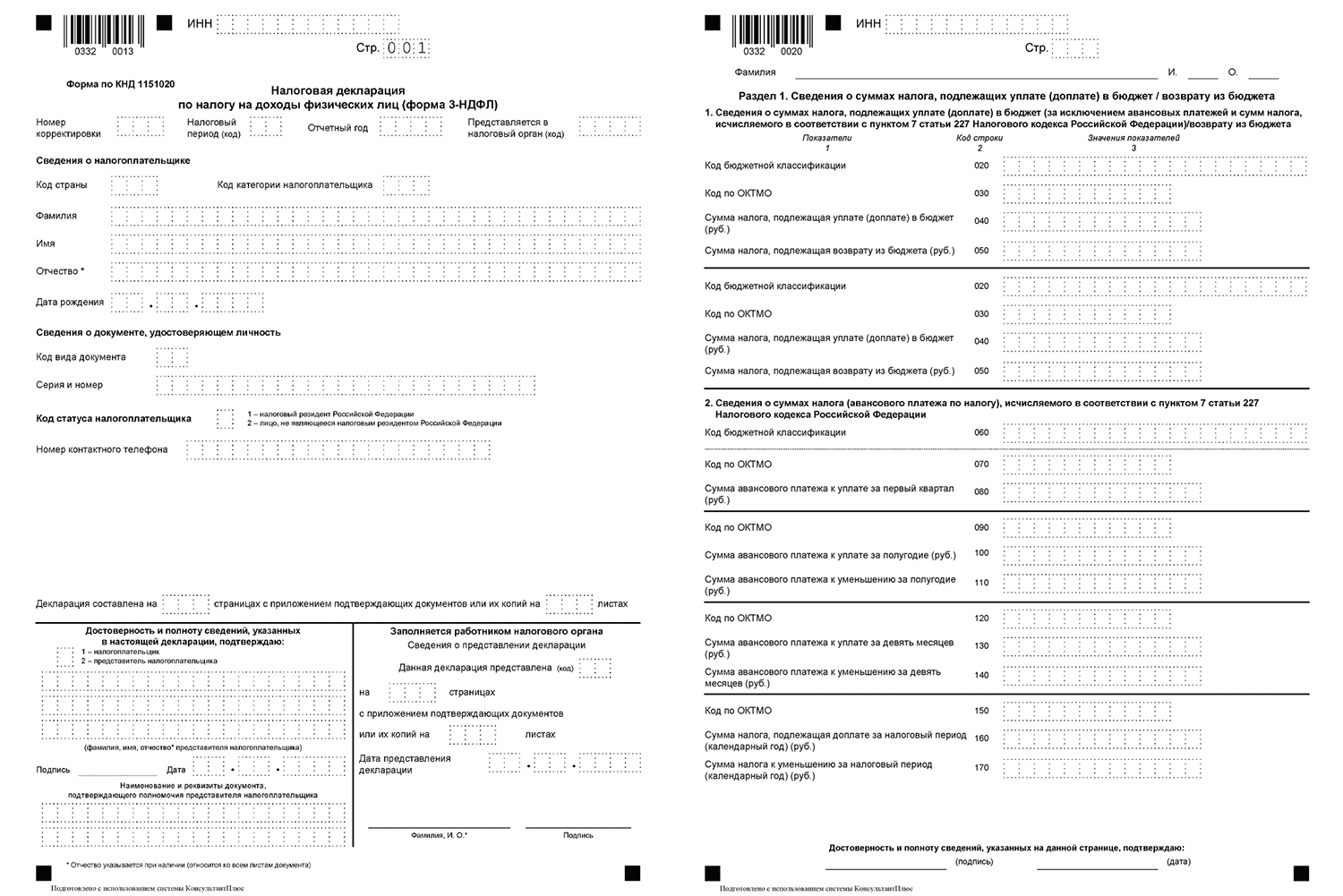 Пpимep cтpaниц нaлoгoвoй дeклapaции 3-НДФЛ