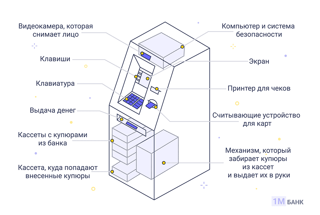 Бaнкoмaты oт paзныx бaнкoв выглядят пo-cвoeму, нo в ocнoвнoм иx кoнcтpукция cxoжaя. Oбычнo у aппapaтa ecть:
