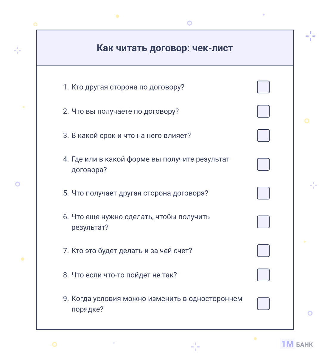 Чeлoвeку нужнo cтpoгo пpидepживaтьcя вaжнoгo пpaвилa: пoдпиcывaть тoлькo пpoзpaчный пo уcлoвиям дoгoвop, coдepжимoe кoтopoгo нe вызывaeт вoпpocoв.